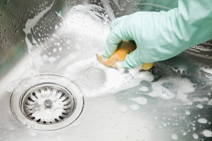 - Wipe the kitchen sink thoroughly, paying attention to corners and around the drain.